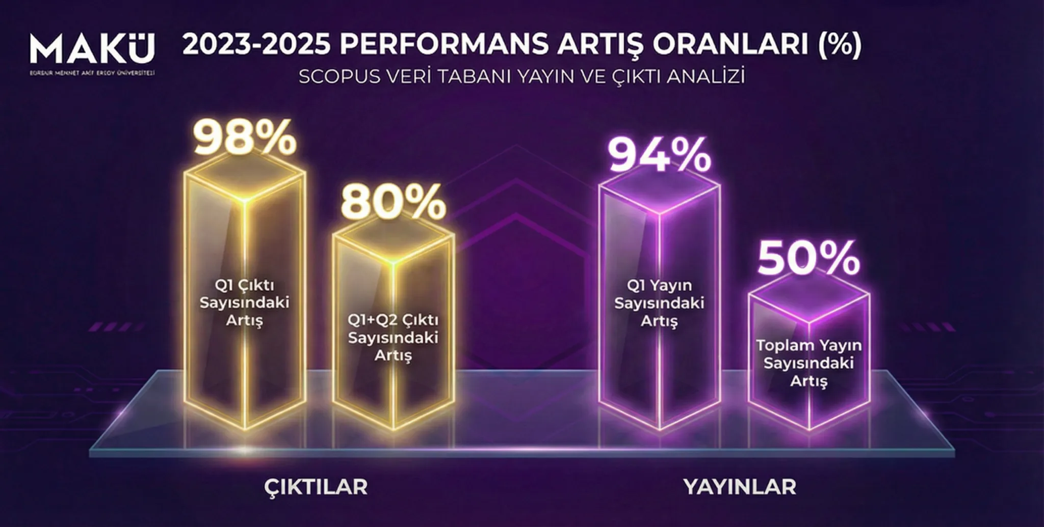Bu başarı, bilimsel kalite, üretim kapasitesi ve sürdürülebilir akademik gelişimin güçlü bir göstergesi olup, MAKÜ Ailesi’nin özverili emeğinin bir sonucudur.